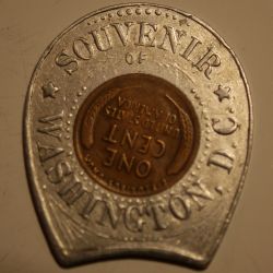 1929 horseshoe encased cent - reverse reads: "SOUVENIR / OF / WASHINGTON, D.C." (Hover for larger image)